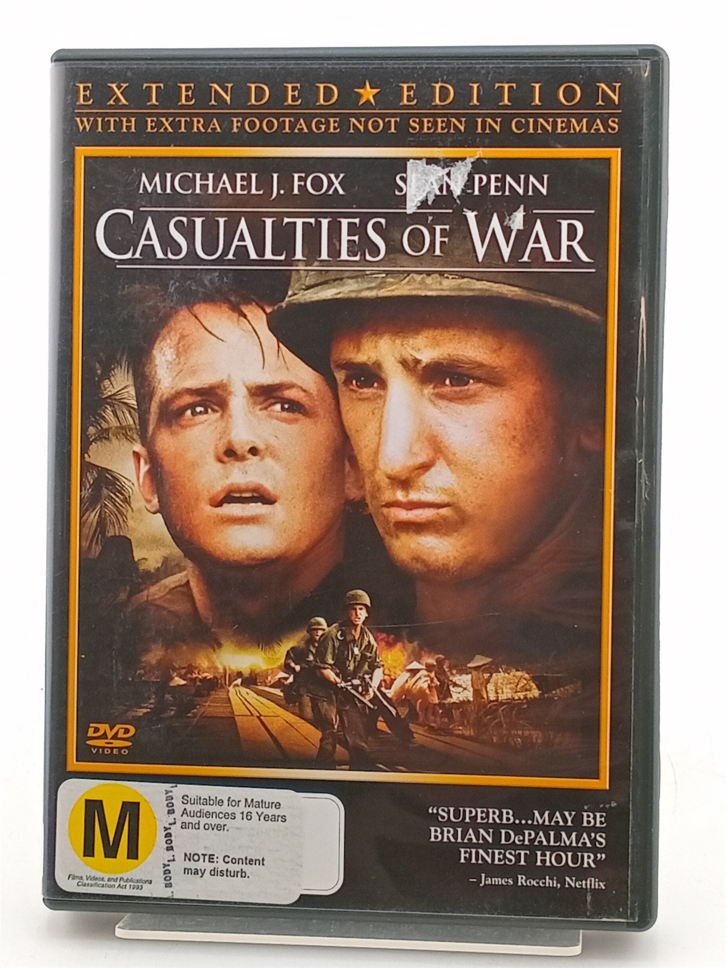 Hailed by critics as a masterpiece, Casualties of War is based on the true story of soldiers caught in the moral quagmire of wartime Vietnam. Witness to a vile crime, Private Eriksson (Michael J. Fox from Back to the Future, TV's Spin City) is forced to stand alone against his fellow soldiers and commanding officer Sergeant Meserve (Sean Penn from Dead Man Walking, Fast Times at Ridgemont High), a powerful and charismatic man pushed over the edge of barbarism by the terror and brutality of combat. With sweeping scope, action and raw power, master filmmaker Brian De Palma (The Untouchables, Scarface) creates a devastating and unforgettable tale of one man's quest for sanity and justice amidst the chaos of war.