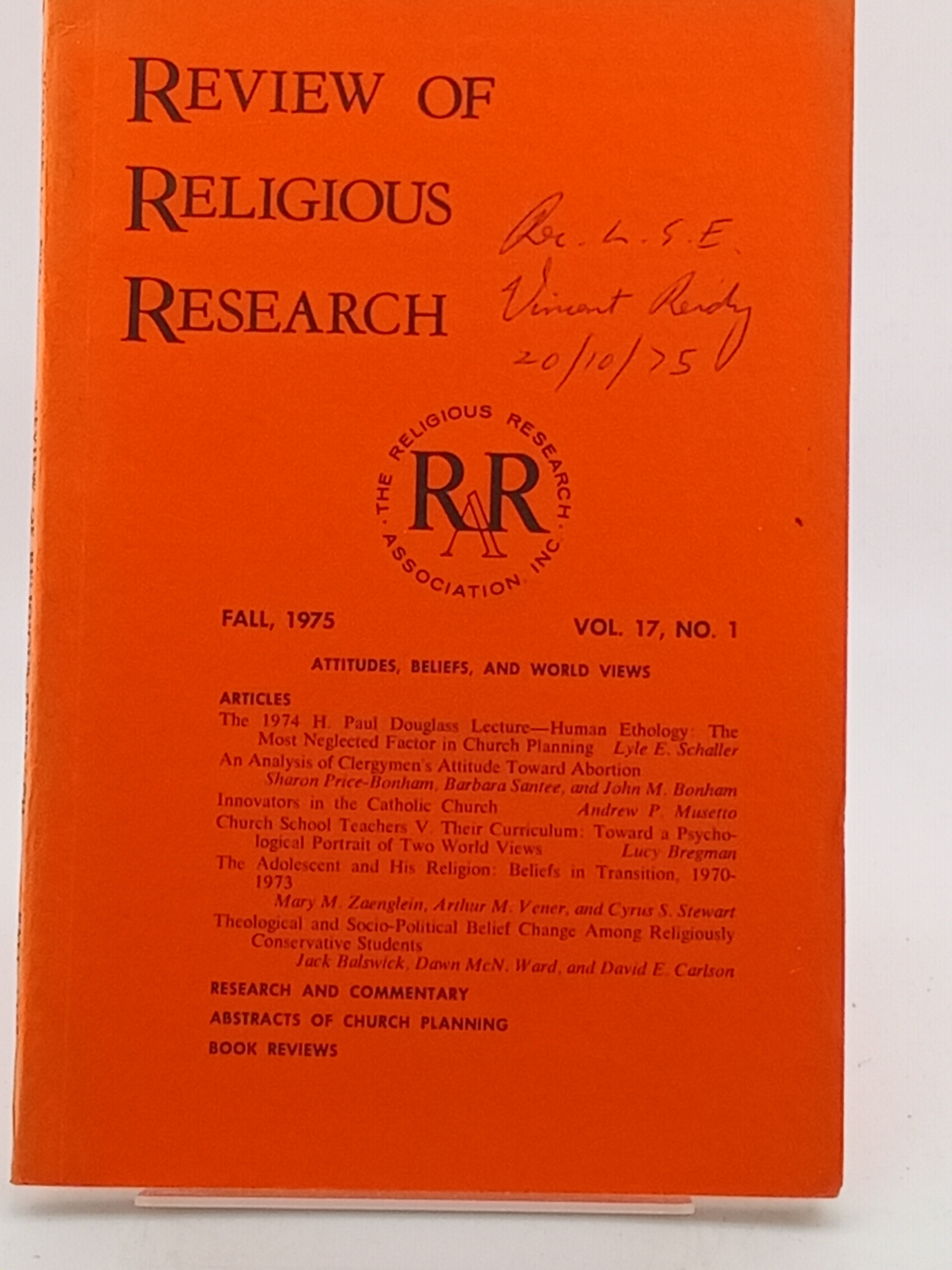 Review of Religious Research: Vol. 17 No. 1, Fall 1975