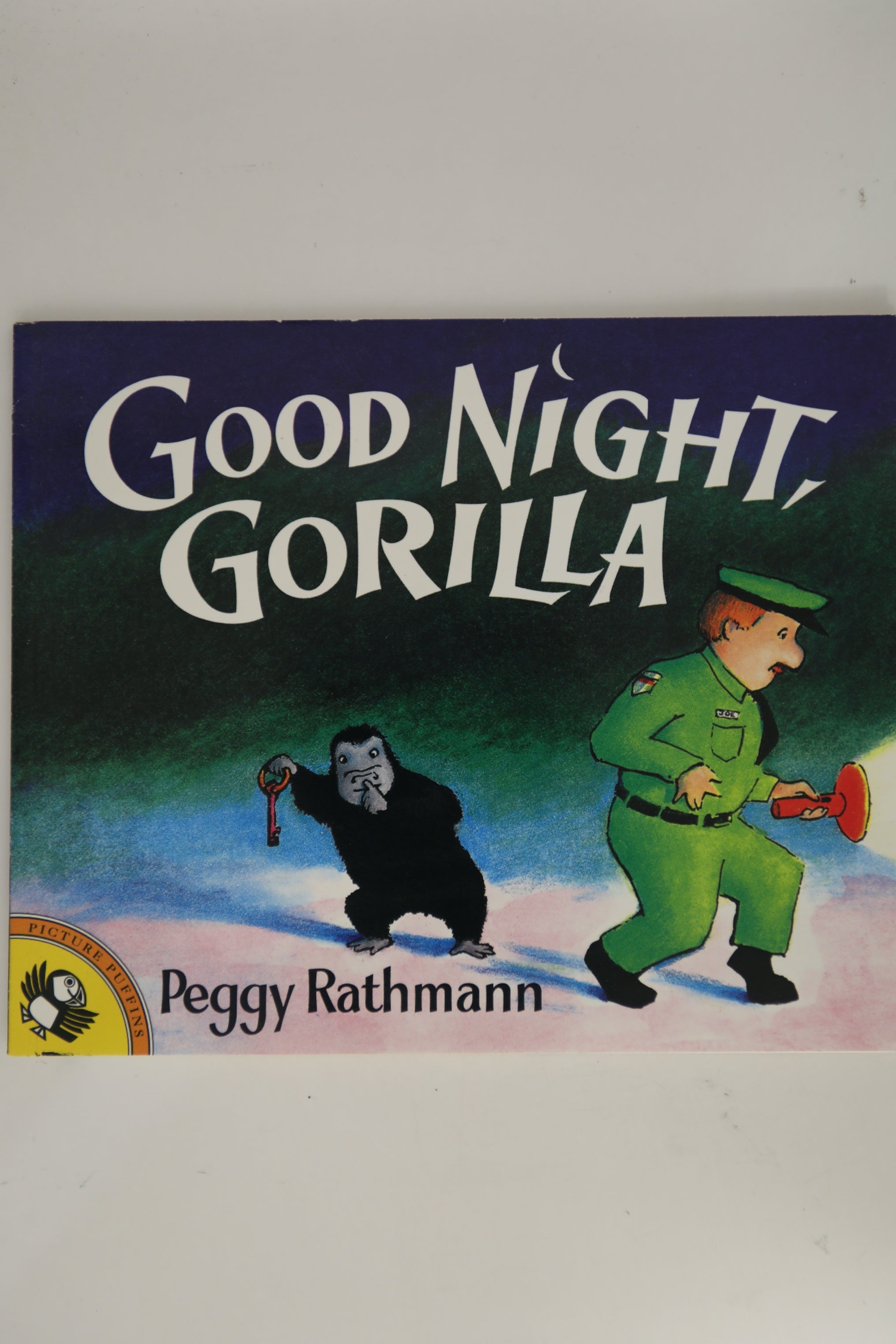 Notes From Your Bookseller Say goodnight to the zany zoo animals featured in Peggy Rathmann's Good Night, Gorilla! Children will delight in the images and sounds that seem to leap off the page of this fun bedtime book. Good night, Gorilla, says the zookeeper. But mischievous Gorilla isn't quite ready to go to sleep. He'd rather follow the zookeeper on his rounds and let all of the other animals out of their cages. Little night owls can sneak along with Gorilla and see who gets the last laugh in this riotous goodnight romp. Practically wordless yet full of expressive art and hilarious, adorable detail, this book from Caldecott Medal winning author Peggy Rathmann is sure to become a beloved part of children's own bedtime rituals. ALA Notable Children's Book for 1994 Bulletin Blue Ribbon 1994 Horn Book Fanfare 1995 selection Parenting Magazine Best Children's Books of 1994 New York Public Library 1995 Children's Books 100 Titles for Reading and Sharing In a book economical in text and simple in illustrations, the many amusing, small details, as well as the tranquil tome of the story, make this an outstanding picture book. -The Horn Book, starred review The amiable cartoon characters, vibrant palette, and affectionate tone of the author's art recall Thatcher Hurd's cheerful illustrations. Delightful.-Kirkus Reviews, starred review A clever, comforting bedtime story. -School Library Journal, starred review Jaunty four-color artwork carries the story and offers more with every look. -Booklist Editorial Reviews In a book economical in text and simple in illustrations, the many amusing, small details, as well as the tranquil tome of the story, make this an outstanding picture book. -The Horn Book, starred review The amiable cartoon characters, vibrant palette, and affectionate tone of the author's art recall Thatcher Hurd's cheerful illustrations. Delightful.-Kirkus Reviews, starred review A clever, comforting bedtime story. -School Library Journal, starred review Jaunty four-color artwork carries the story and offers more with every look. -Booklist - From the Publisher Unaware that a gorilla has stolen his keys, a zookeeper wishes all the animals good-night and sets off for home. A troupe of newly freed beasts follow the sleepy keeper back to his house and into his bed. When the keeper's wife wakes to wish her husband good-night, many good-night wishes come back to her from out of the dark! - Barnes & Noble Staff Universally understandable subject matter and a narrative conveyed almost entirely through pictures mark this as an ideal title for beginners. A zookeeper makes his nightly rounds, bidding good night to a gorilla, a lion, a giraffe and so on. He doesn't know that the gorilla has procured his keys and is unlocking each animal's cage; a jungly crowd files quietly behind the keeper as he walks home and crawls into bed. When his wife says, ``Good night, dear,'' seven voices reply, ``Good night,'' and it's up to the missus to return the mischievous menagerie. Although Rathmann's illustrations lack the artistic ingenuity she displayed in Ruby the Copycat and Bootsie Barker Bites , the author/artist connects with her audience on several levels. Children can identify with the animals, who have toys in their cages (the elephant has a plush Babar) and resist being left alone in their ``rooms'' all night; they will also enjoy some minor subplots. Some details prove questionable (for example, one overdrawn visage of Mrs. Zookeeper seems blurry, particularly because she's rendered with a few simple lines elsewhere), yet these considerations take a back seat to Rathmann's comic exuberance. Ages 3-6. ( Apr. ) - Publishers Weekly - Publisher's Weekly Peggy Rathmann's Good Night, Gorilla returns as a hefty, oversize board book. Of this tale of a sneaky simian who escapes from the zoo, PW said, Universally understandable subject matter and a narrative conveyed almost entirely through pictures mark this as an ideal title for beginners. Copyright 2004 Reed Business Information. - Publishers Weekly PreS-Gr 1-A mischievous little gorilla lifts the zoo keeper's keys on the first page of this sparely worded picture book. The brightly colored illustrations basically tell the entertaining story as the gorilla tags along behind the man, gleefully freeing all of the other animals, who then follow him single file into his neat little house. It is his unruffled wife who, without disturbing her sleepy husband, calmly returns the creatures to their cages. Even she, however, does not notice the wily gorilla, who, still in possession of the keys, returns to the house, slips into the big bed, and curls up contentedly between the people for the night. A clever, comforting bedtime story.-Jan Shepherd Ross, Dixie Elementary Magnet School, Lexington, KY - School Library Journal
