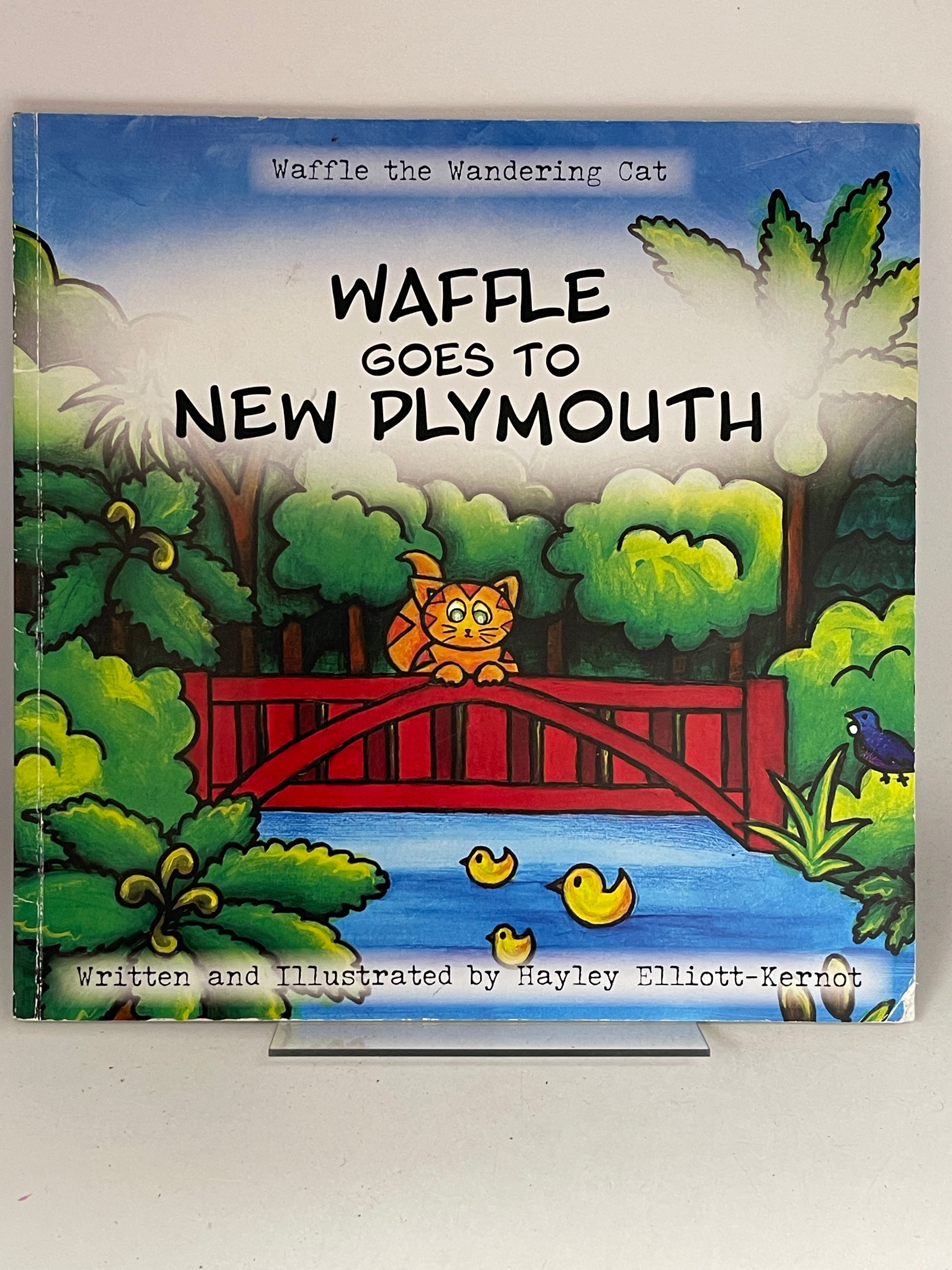 Waffle the Wandering Cat is a book about New Plymouth. The book centres around a large ginger cat called Waffle who likes to travel. Waffle travels to New Plymouth and explores the mountain, Pukekura Park, the walkway and much more.