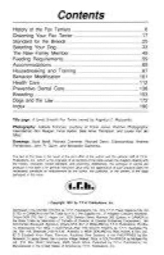 This book, illustrated throughout entirely with full-color photos and drawings, presents sensible, easy-to-follow recommendations about selecting and caring for a Fox Terrier. It concentrates on providing readers with the information they need and want -- all given in an interesting and easy-to-read style.