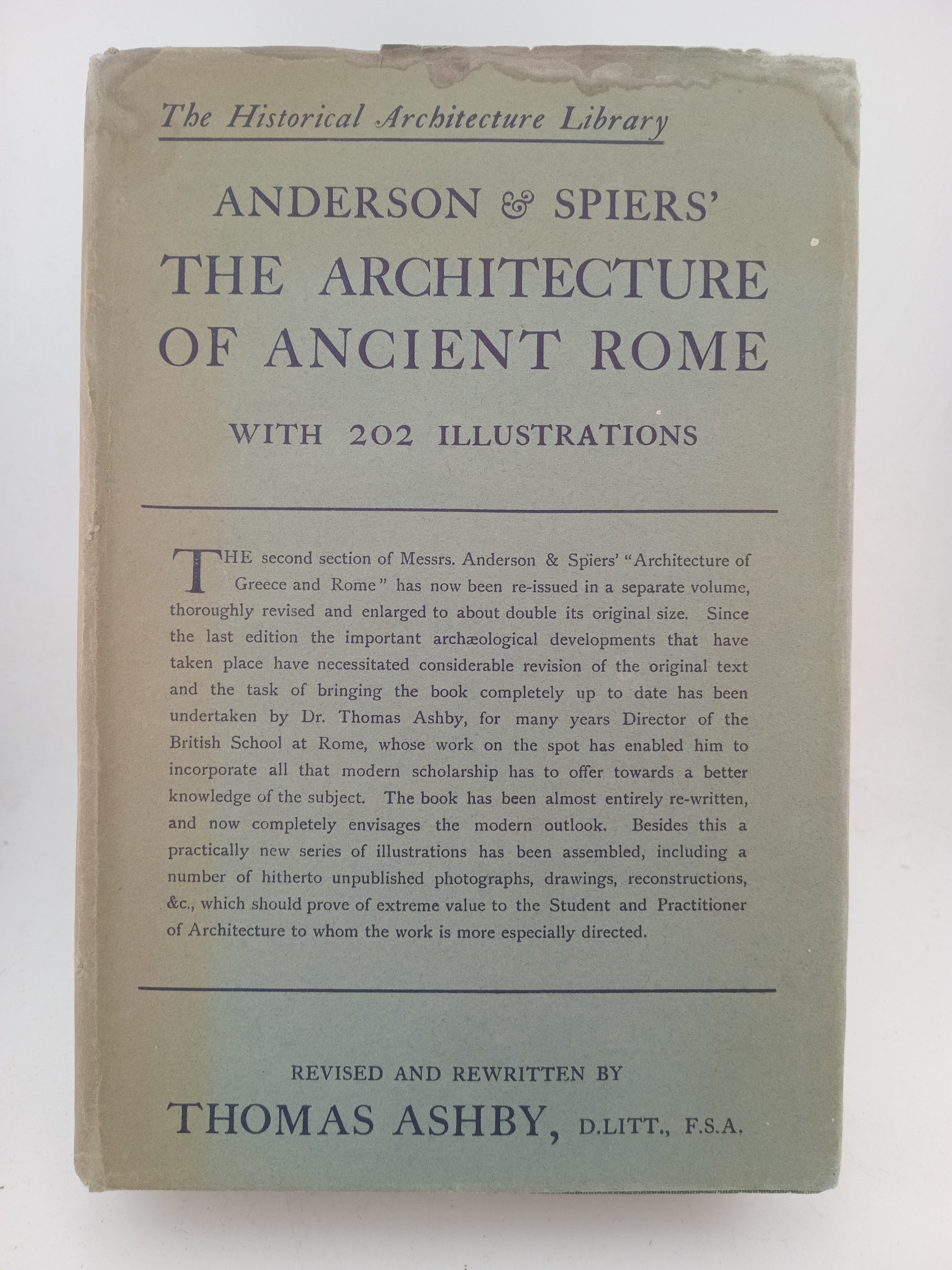 The Architecture of Ancient Rome: an account of its historical development by William J. Anderson, R. Phené Spiers, Thomas Ashby