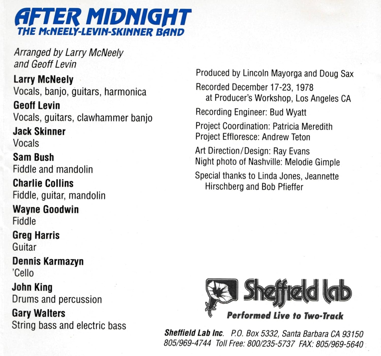 After Midnight [CD] by McNeely-Levin-Skinner Band,Larry McNeely