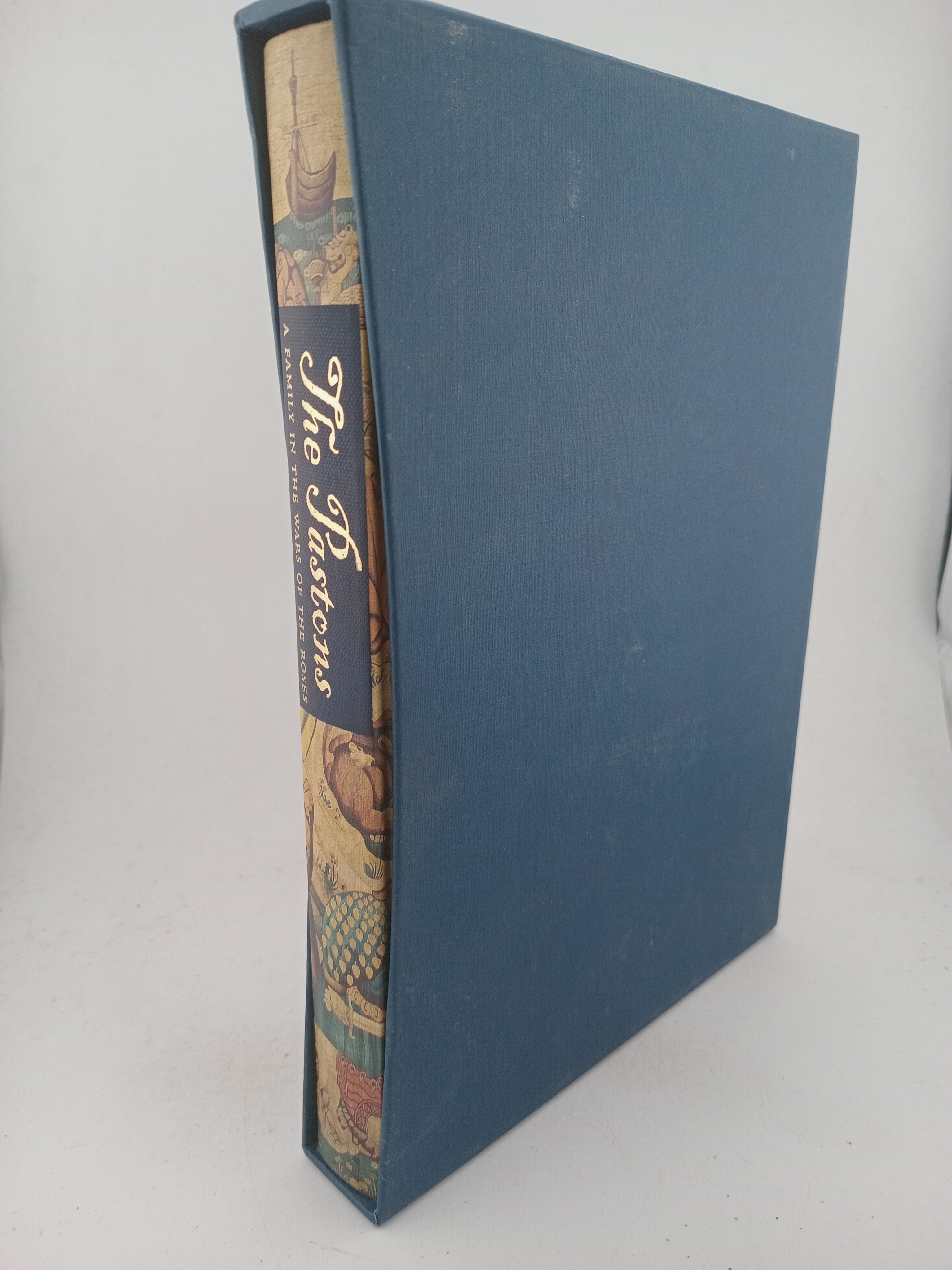 Pastons, The; A Family in the War of the Roses. Edited by Richard Barber. 10 leaves of colour reproductions of tapestries. Quarter bound in orange cloth, dark blue-green cloth boards with a Tudor rose design in red and white. Map endleaves. blue slipcase. 25.1x16.6cm. 208pp. 3rd printing with new cover
