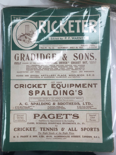 The Cricketer Magazine 1923 (12 issues) by P.F. Warner (editor)
