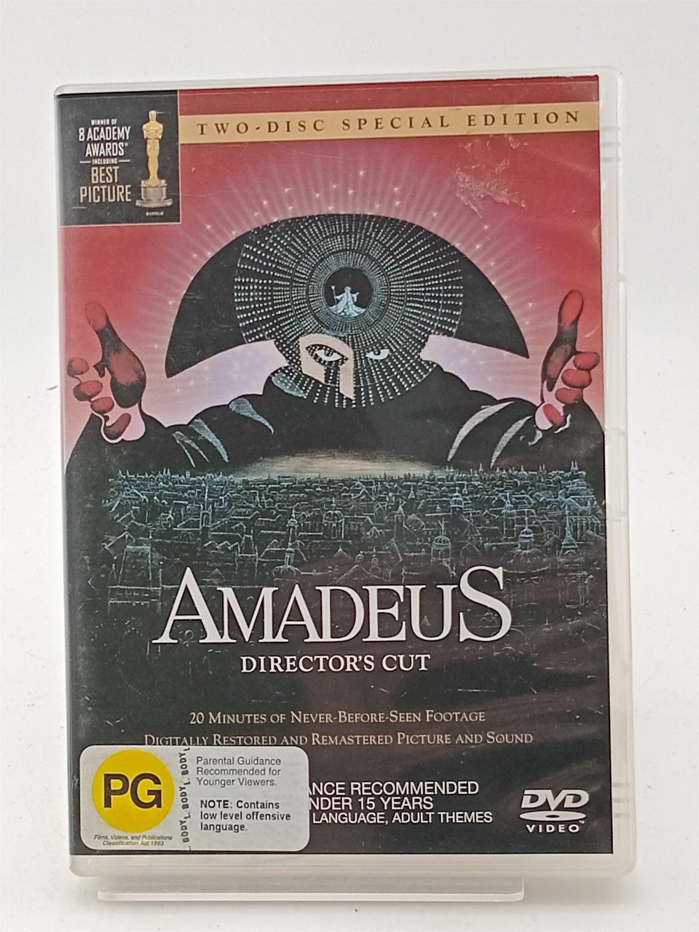 The Man... The Music... The Madness... The Murder... The Motion Picture... Now seen in a revitalized digital transfer and including more than 20 minutes worth of scenes not seen in its original release, Amadeus remains a screen triumph: as sumptuous period epic, soaring celebration of the music of Wolfgang Amadeus Mozart, a top-100 films selection by the American Film Institute and as the winner of eight 1984 Academy Awards, including Best Picture, Director and Adapted Screenplay. In 1781 Vienna, court composer Antonio Salieri is maddened with envy after discovering that the divine musical gifts he desires for himself have been bestowed on the bawdy, impish Mozart, whom he plots to destroy by any means necessary. And by means of cinematic craft and sublime music, we watch spellbound.