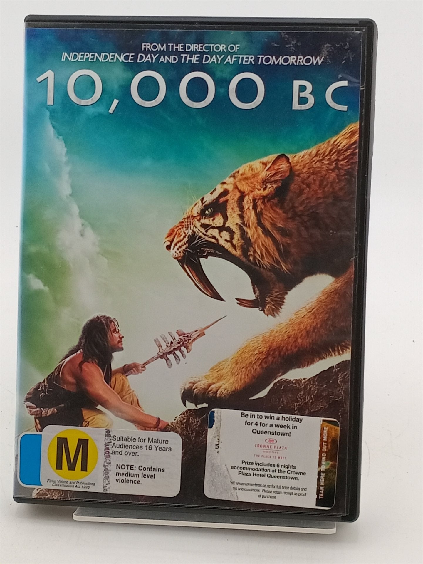 The filmmaker who launched a UFO invasion in Independence Day and unleashed the forces of global warming in The Day After Tomorrow now unveils a new day of adventure, a time when mammoths shake the earth and mystical spirits shape human fates. Roland Emmerich directs 10,000 BC, the eye-filling tale of the first hero. That hero is young hunter D'Leh (Steven Strait), set out on a bold trek to rescue his kidnapped beloved (Camilla Belle) and fulfill his prophetic destiny. He'll face an awesome saber-toothed tiger. Cross uncharted realms. Form an army. And uncover an advanced but corrupt Lost Civilization. There, he will lead a fight for liberation - and become the champion of the time when legend began.