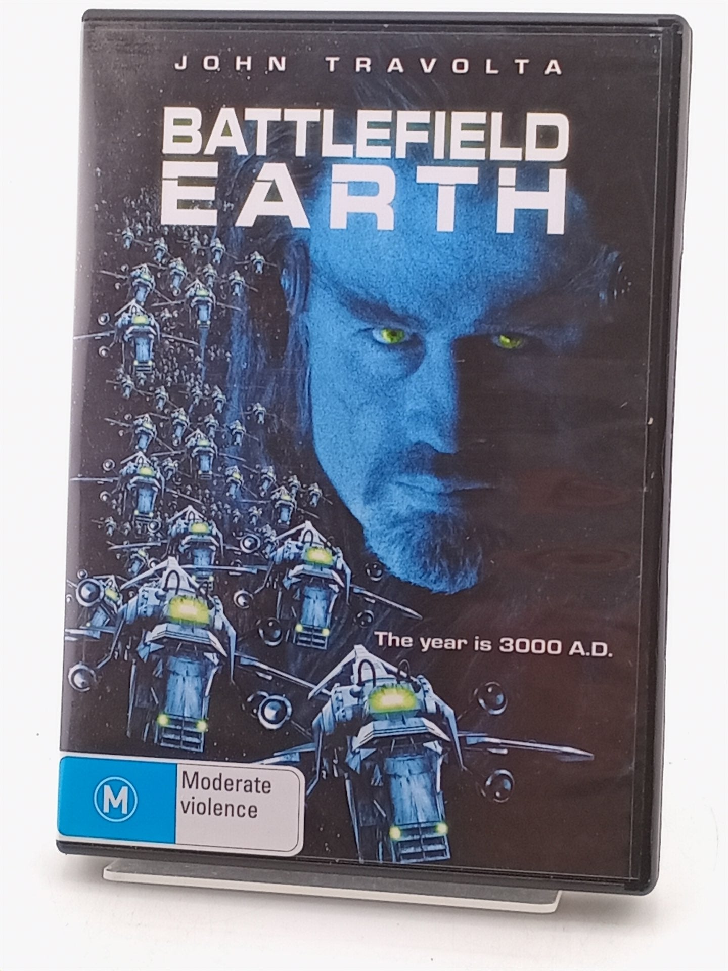 It is 3000 A.D. Centuries have passed since Earth was invaded by the giant, gas breathing aliens from the planet, Psychlo. All memory of the invasion has been erased from human consciousness and replaced with the belief that the aliens are vengeful gods who have ruled for generations. Human beings are now divided into two surviving groups - those enslaved by the Psychlos and those hiding in remote isolation. Jonnie Goodboy Tyler is a renegade human who has eluded enslavement, until he too comes under the savage rule of alien chief of security, Terl (John Travolta). Terl is impressed with Jonnie's skilful attempts at escape and spares him for a special project. Jonnie, however, has plans of his own and annihilation of his captors is just the beginning... It's Mortal Kombat meets Independence Day in this explosive sci-fi action adventure starring John Travolta (The General's Daughter), Barry Pepper (Saving Private Ryan), Forest Whitaker (Species), Kim Coates (The Client) and with a special appearance by Kelly Preston (Jerry Maguire).