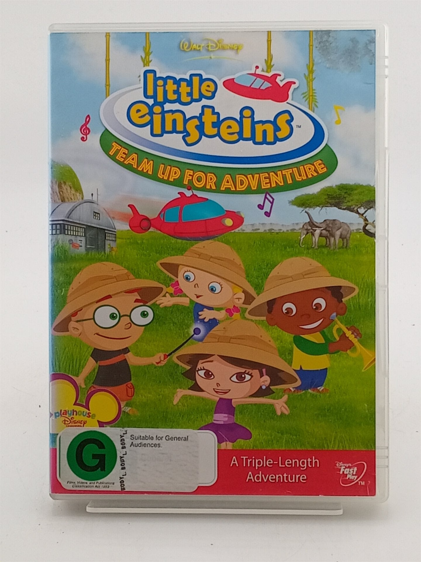 Disney's Little Einsteins, the extraordinary series from Disney and the award-winning Baby Einstein Company, invites preschoolers to blast off on thrilling, music-filled journeys to real-world destinations where they'll solve important missions and have fun learning along the way. Join Leo, June, Quincy and Annie as they meet their musical ship, Rocket, for the very first time and become the biggest little \"superheroes\" ever! Take a whirlwind voyage around the globe, and experience close encounters with a bald eagle, an erupting volcano and friendly whales to learn how teamwork can save the day. As a member of the team, you'll sing, clap, pat, dance, laugh and problem-solve right along with the Little Einsteins. With its revolutionary blend of animation, live-action footage and exciting classical music, Team Up For Adventure will have you eager to blast off on the next magical, musical mission of discovery!