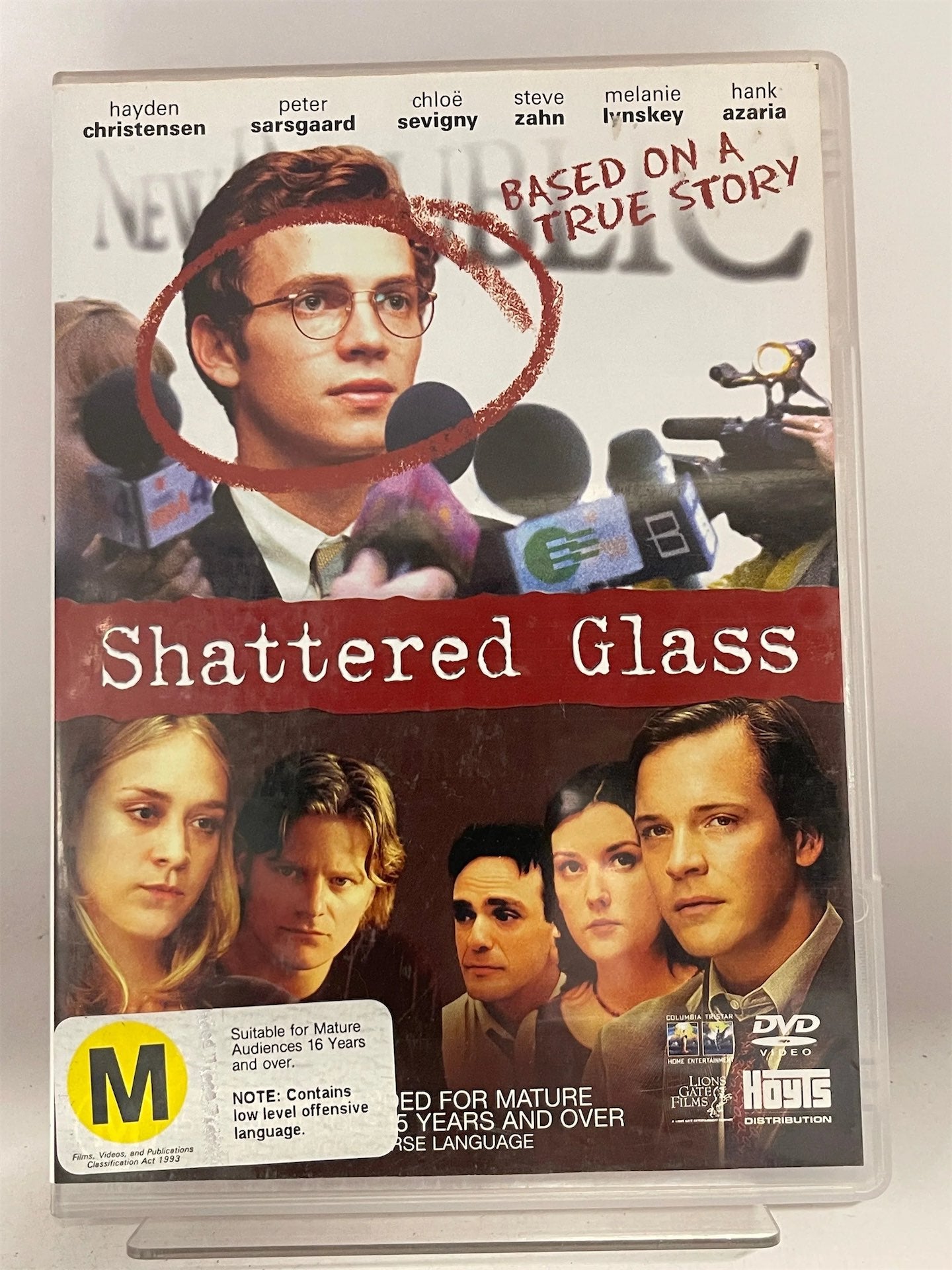\"A DYNAMITE THRILLER\" raved Peter Travers from Rolling Stone Magazine of SHATTERED GLASS, the compelling expose of disgraced journalist Stephen Glass. Brought to the screen in a live-wire performance by LIFE AS A HOUSE star HAYDEN CHRISTENSEN, Glass is a young reporter on the fast track to fame and fortune...until it is discovered that his work contains more fiction than fact. A top-class supporting cast that includes HANK AZARIA, STEVE ZAHN, CHLOE SEVIGNY and PETER SARSGAARD (in his Golden Globe Award nominated role) bring this true story to life in a film that is essential viewing for anyone who loves edge-of-your-seat thrills and torn-from-the-headlines drama.