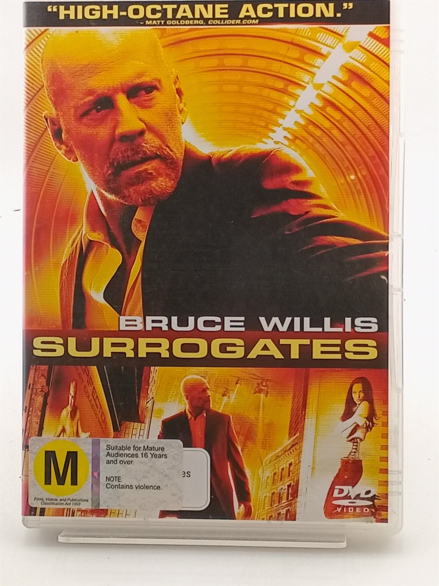 Set in a futuristic world where humans interact vicariously through surrogate androids that brave life experiences on behalf of their human controllers. An FBI agent (Willis) is forced to venture out into this world as his human self to track down someone who's killing humans by attacking their android surrogates.