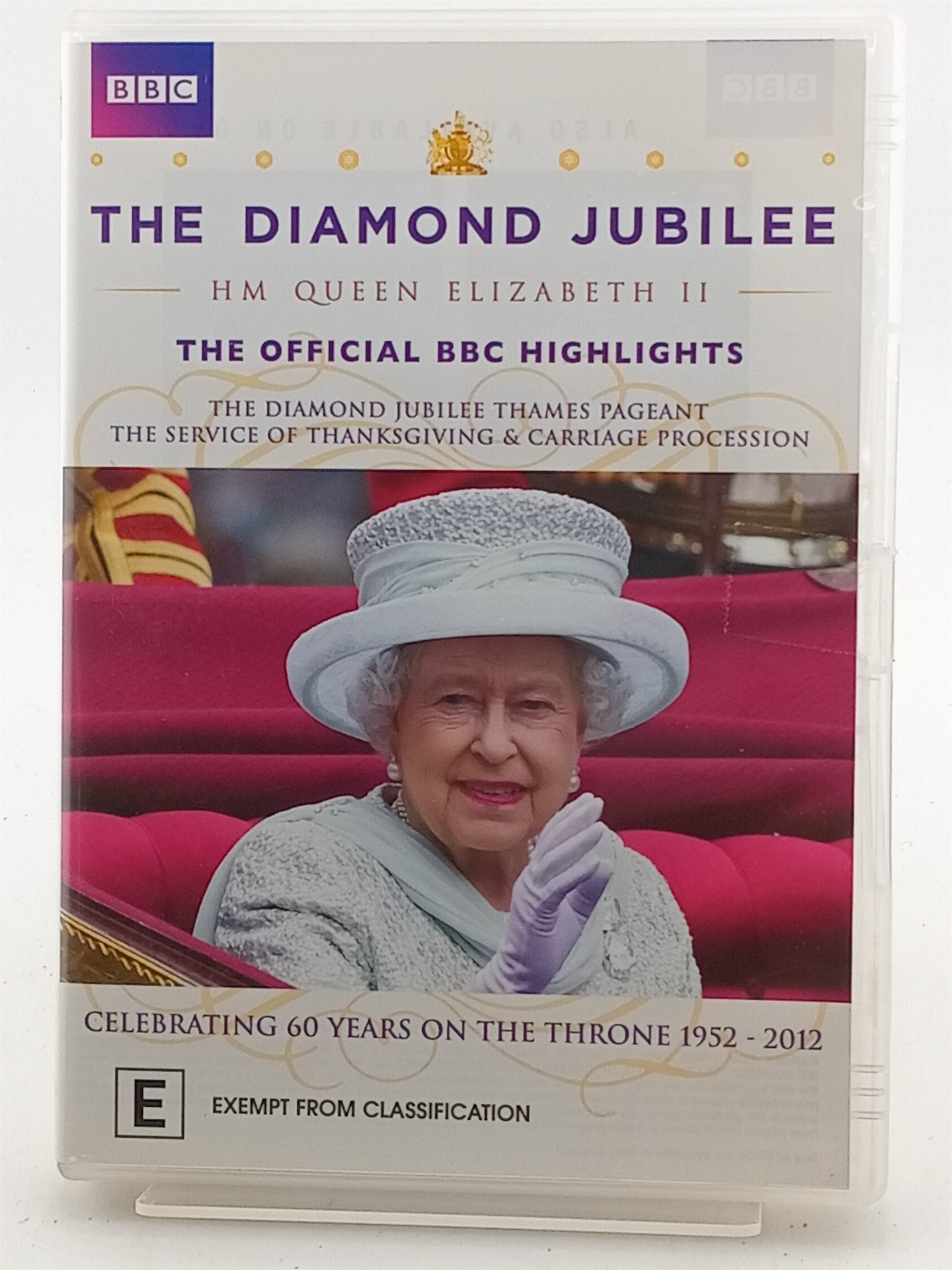 On 2 June 2012 Her Majesty the Queen will celebrate her Diamond Jubilee. To mark the 60 years since she came to the throne in February 1952, a remarkable river pageant and a Service of Thanksgiving will be staged in London. These highlights capture the unique spectacle and pageantry of these landmark events on a momentous day. Includes The Diamond Jubilee River Pageant where over a million people will line the banks of the Thames, as decorated craft of all descriptions bring the river to life in a joyous and colourful display accompanied by chiming bells, spectacular fireworks and a naval gun salute. Also includes highlights from the service of thanksgiving at St Pauls Cathedral as well as the magnificent pomp and pageantry of the royal carriages return journey, the appearance of the Royal Family on the Buckingham Palace balcony and the RAF flypast.
