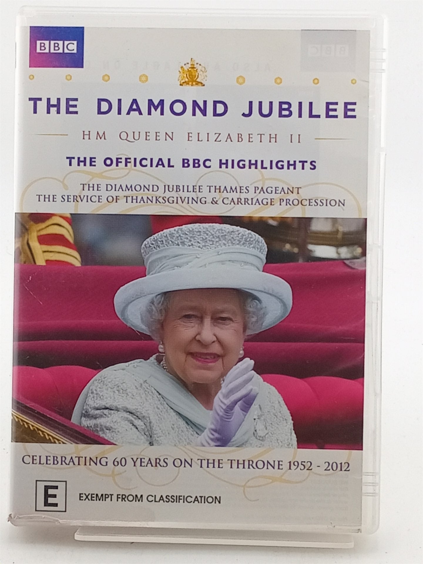 On 2 June 2012 Her Majesty the Queen will celebrate her Diamond Jubilee. To mark the 60 years since she came to the throne in February 1952, a remarkable river pageant and a Service of Thanksgiving will be staged in London. These highlights capture the unique spectacle and pageantry of these landmark events on a momentous day. Includes The Diamond Jubilee River Pageant where over a million people will line the banks of the Thames, as decorated craft of all descriptions bring the river to life in a joyous and colourful display accompanied by chiming bells, spectacular fireworks and a naval gun salute. Also includes highlights from the service of thanksgiving at St Pauls Cathedral as well as the magnificent pomp and pageantry of the royal carriages return journey, the appearance of the Royal Family on the Buckingham Palace balcony and the RAF flypast.