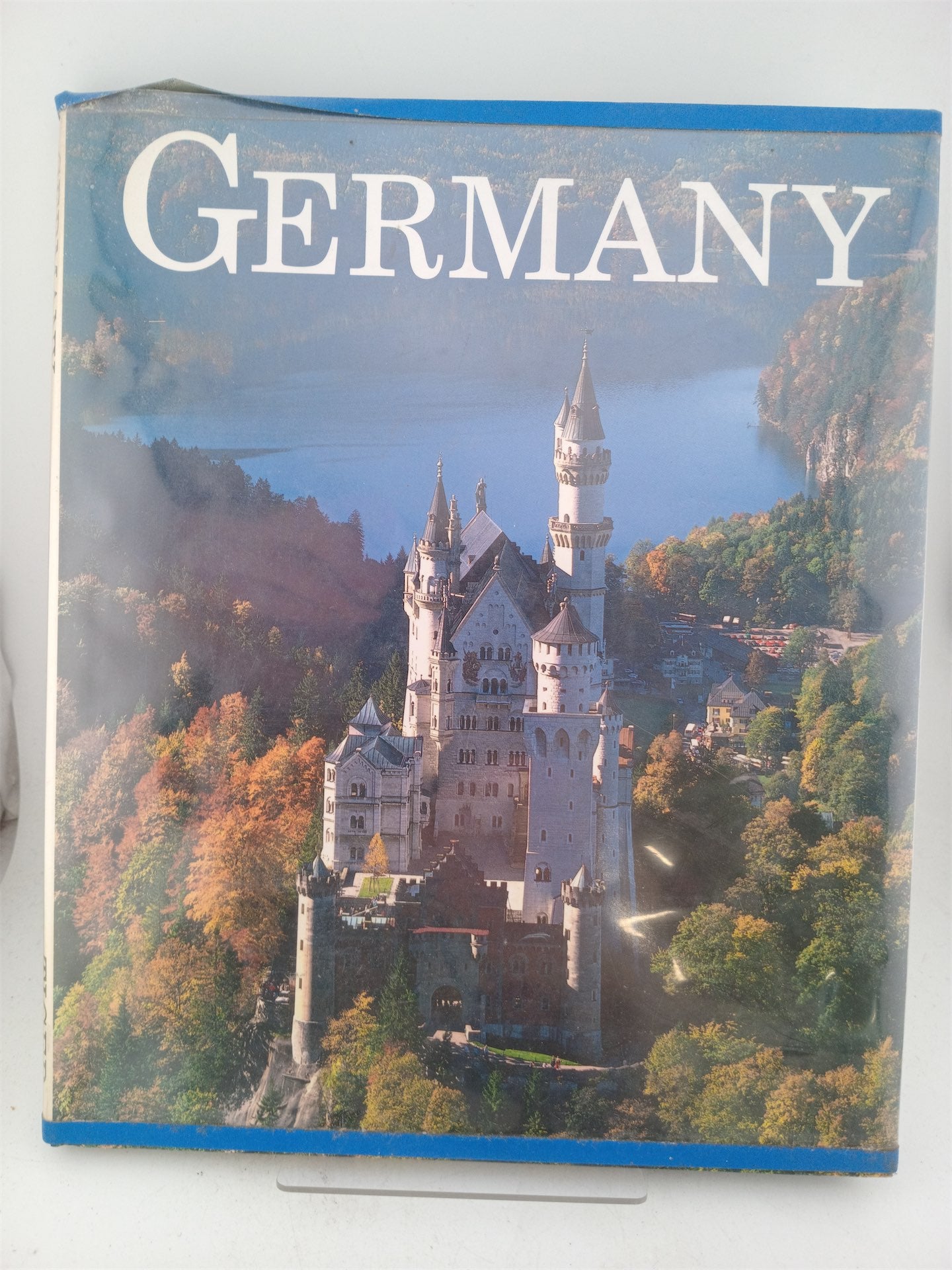 DJ is in plastic cover which has backing paper glued to front of plastic - may leave some glue stains on the rear of dj if removed. Has also left marks on endpapers.