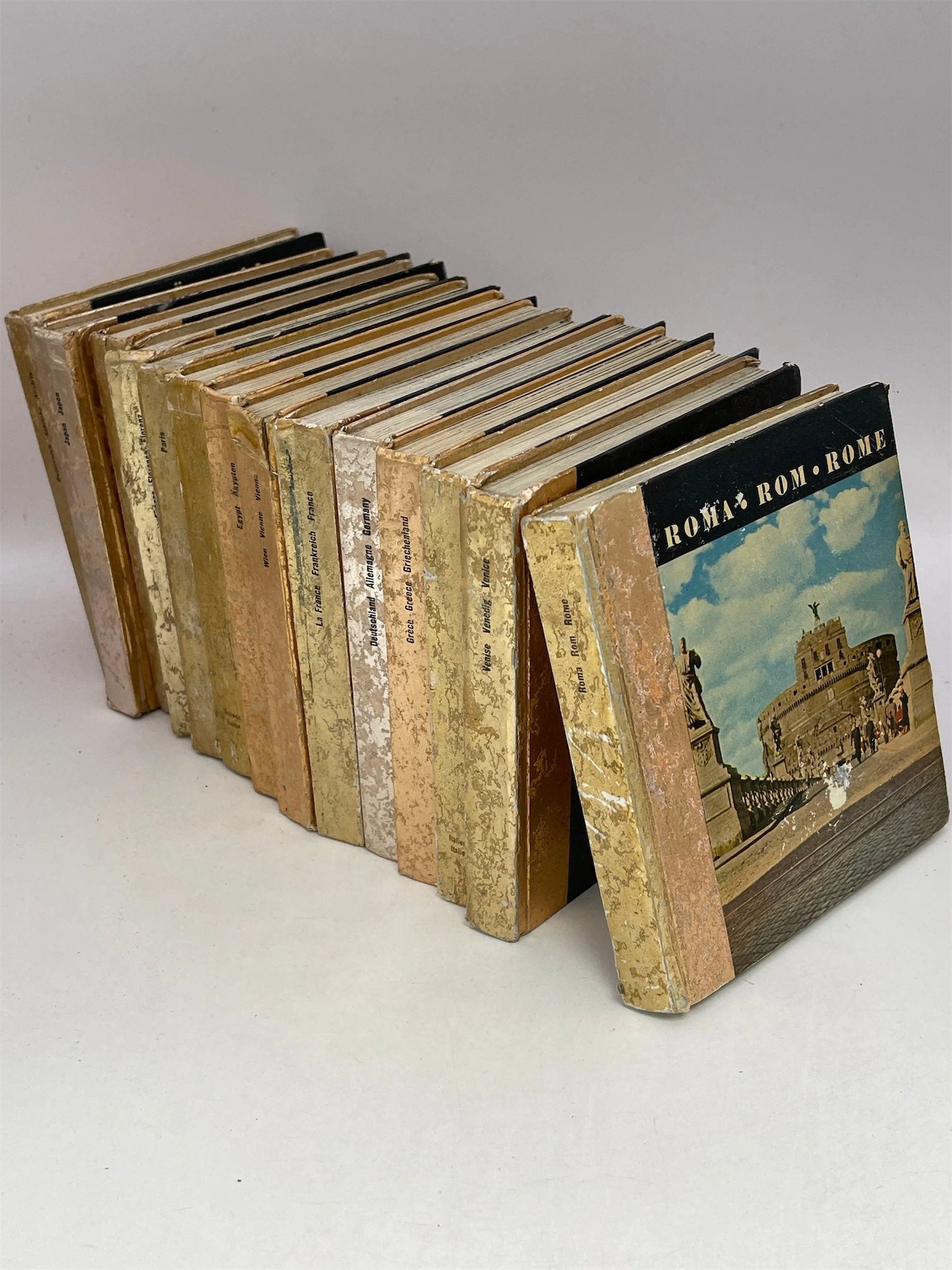 Gold covers are discoloured and worn.