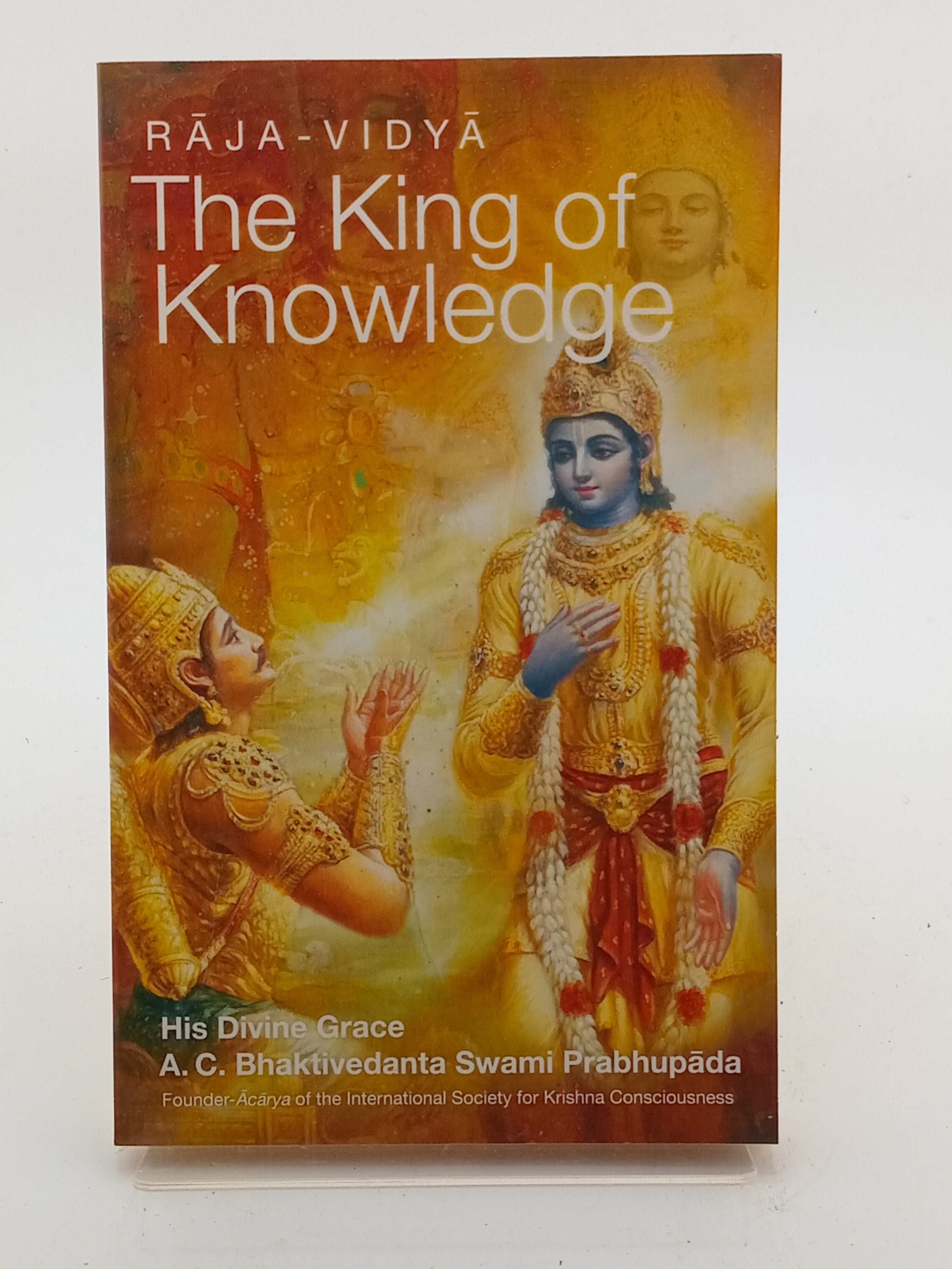 Raja-Vidya: The King of Knowledge is based on the Bhagavad-Gita's pivotal ninth chapter, "The Most Confidential Knowledge." There, Krishna--the Supreme Personality of Godhead--tells His friend Arjuna, "...because you are never envious of Me, I shall impart to you this most confidential knowledge and realization, knowing which you shall be relieved of the miseries of material existence."King of Knowledge began as a series of collected lectures given on the original ninth chapter verses by Srila Prabhupada. He points out that not only Arjuna but anyone can understand the Bhagavad-gita--if we're at least humble enough to accept theoretically that someone else (besides us) is the Supreme Person, and as such might have a thing or two to tell us. Once we understand that everything has its source in the Supreme Person, we know all we need to know.