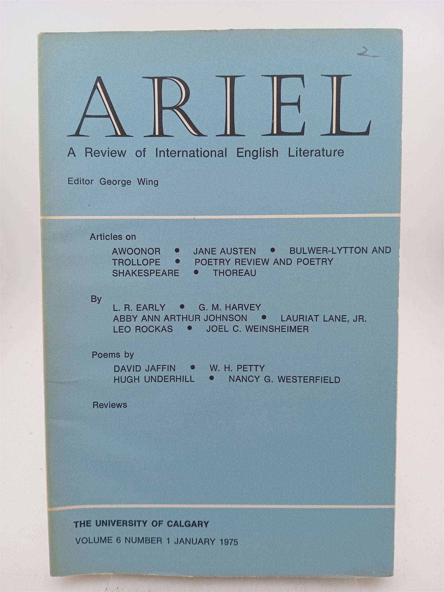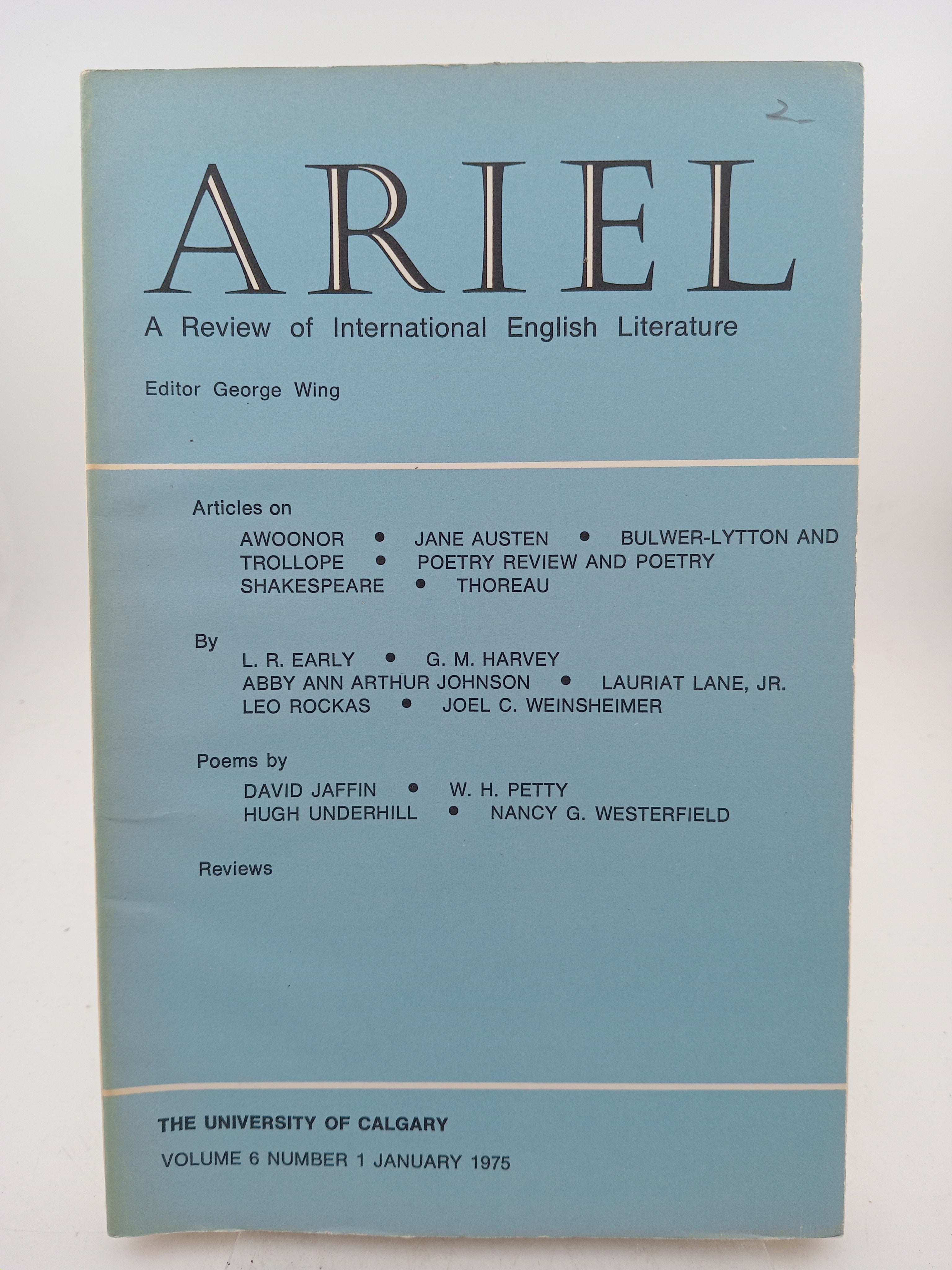 ARIEL (A Review of International English Literature) Volume 6 Number 1 [January 1975] by Unversity of Calgary