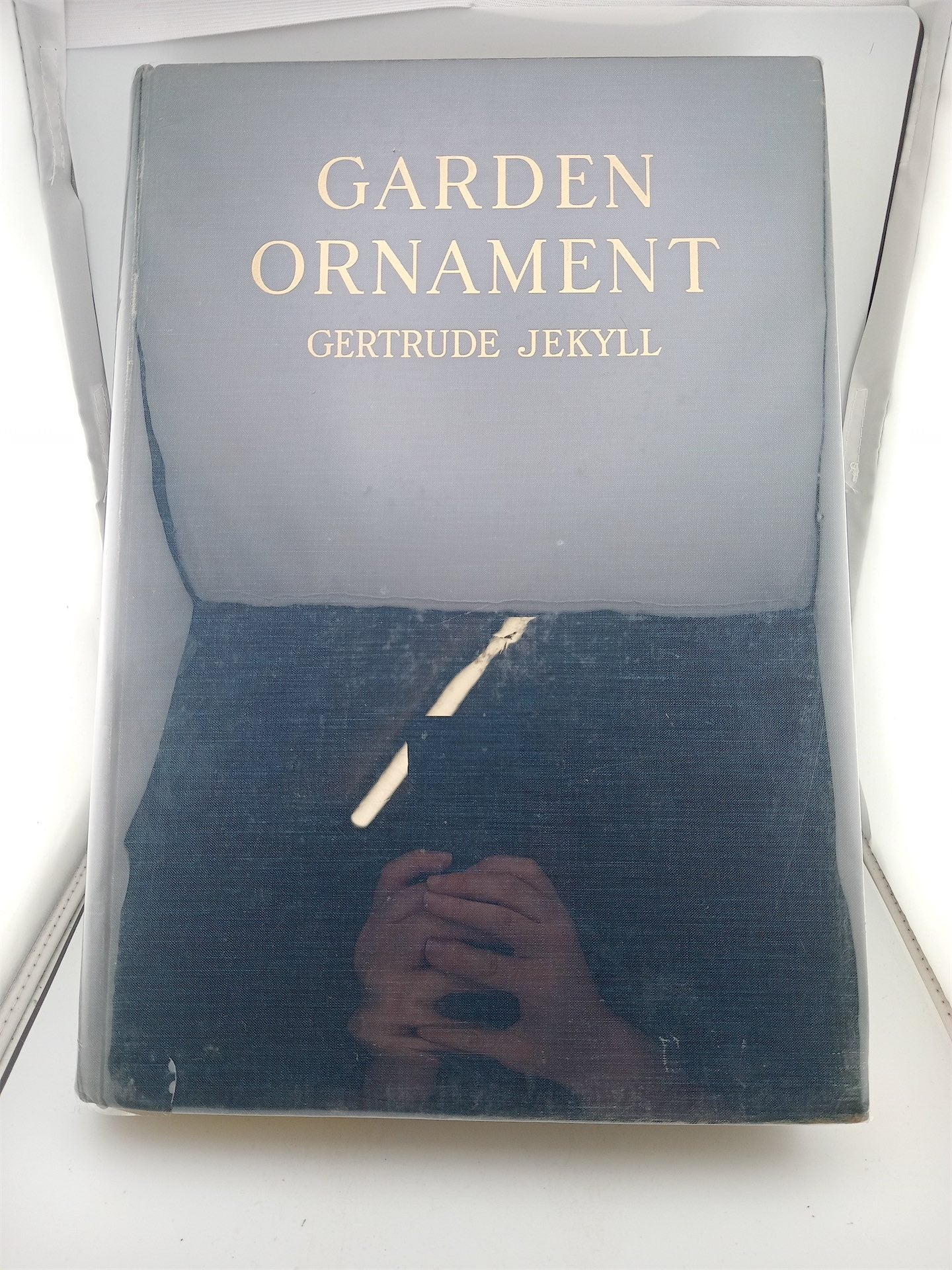 London: Country Life, 1918. First Edition. One of the finest garden books of the twentieth century. Christopher Hussey and Gertrude Jekyll created this impressive pictorial treatise dealing with "garden design in relation to architecture, and, to some extent, with architectural design in relation to gardening." Gertrude Jekyll in her association with Hussey and more famously, Edward Lutyens "devised appropriate rather than merely fashionable solutions; a surveyor's grasp of line and contour, allied to understanding of colour and plants, gave distinction to her designs." Jekyll's books are highly collectible and remain among the most important of all writings in the oeuvre of the garden. This is the most famous book on the subject, comprising introductory text and a superb assembly of photographs of garden ornaments of every kind, including wood and iron gates, steps, balustrades, urns, vases, courts, paved ways, seats, loggias, orangeries, dovecotes, parterres, sundials, topiary, pergolas, treillage, canals, ponds, water gardens, bridges, fountains, dipping wells, borders, wall gardens, Japanese gardens and many more. The examples are chosen primarily from England, with a few from Italy. Folio, bound in orginal blue boards, gloss art paper, 460 pages