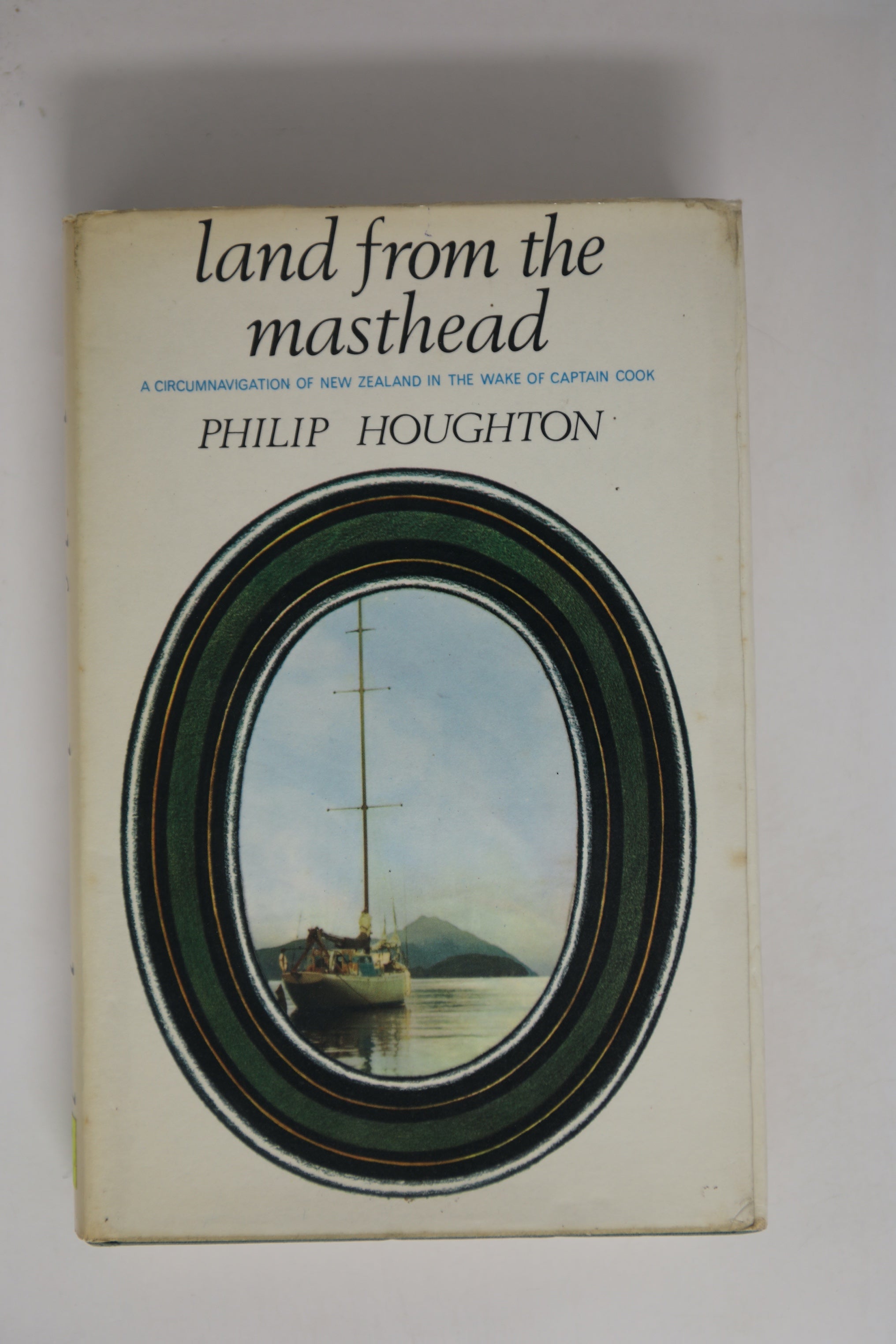 Houghton, Philip. Land from the Masthead. A circumnavigation of New Zealand in the wake of Captain Cook. London, Hodder and Stoughton, 1968. 22,5 cm x 15 cm. 224 pages. With many black-and-white illustrations throughout the book. Original Hardcover with original dustjacket in protective collector's mylar. Very good condition with only minor signs of external wear. Only slightly foxed. Philip Houghton circumnavigated New Zealand in 1966-67 taking five months. He bought the only suitable vessel he could find, a Bermudan cutter forty foot in length, and renamed her Murihiku (the Maori name for the southern end of South Island). A friend was aghast at the idea of him changing the boat's name but quietened once it was pointed out to him that even the Endeavour had once had another name. This book is more a description of Houghton's voyage with references to Cook thrown in than the other way around. There are few illustrations, but it does have a useful index. It is also full of incidents that a yachtsman will understand only too well. (Captaincooksociety.com)