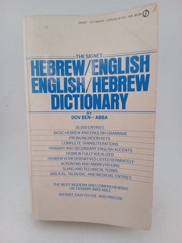Hebrew/English English/Hebrew Dictionary by Dov Ben-Abba