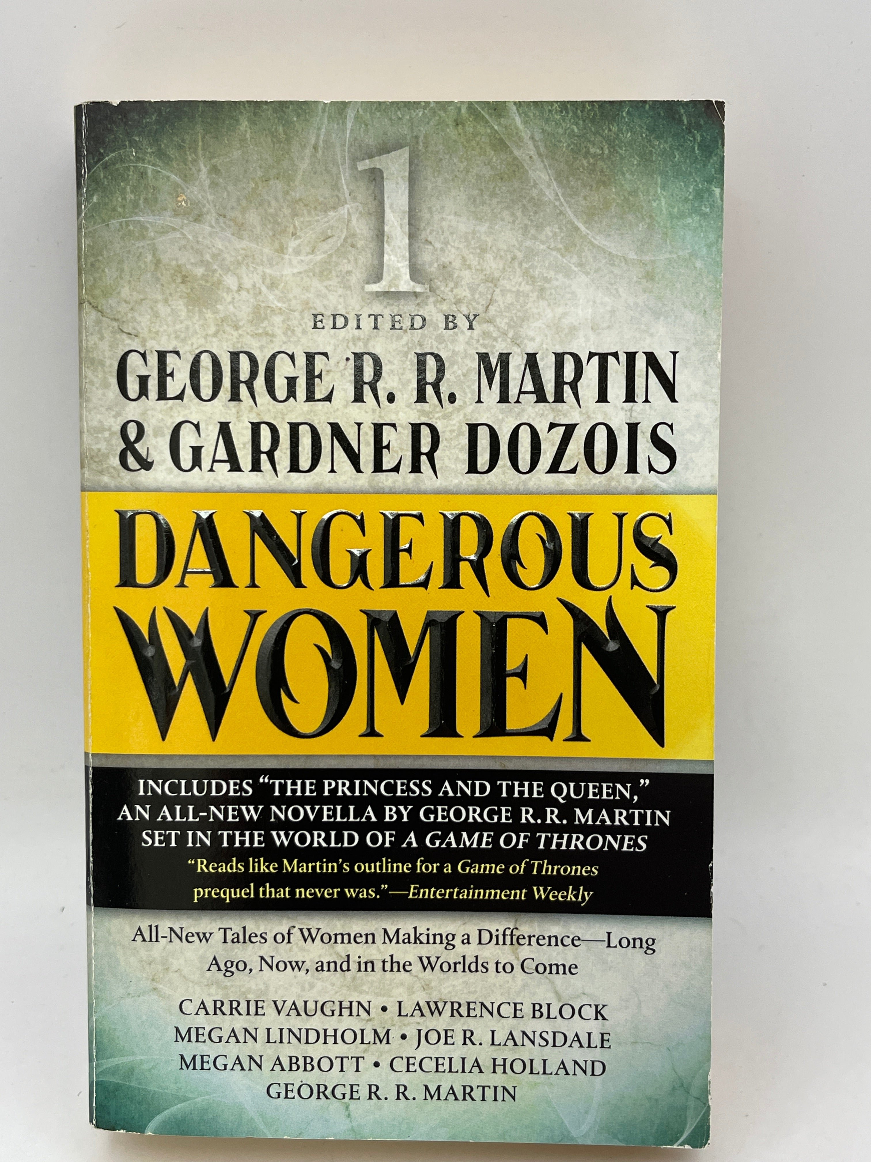 Dangerous Women Vol. 1, edited by George R. R. Martin and Gardner Dozois, includes stories by Carrie Vaughn, Megan Lindholm, Lawrence Block, Joe R. Lansdale, Megan Abbott, Cecelia Holland, and features George R. R. Martin's The Princess and the Queen, a 35,000-word original novella set in the world of his bestselling Song of Ice and Fire series, basis for the hit HBO series Game of Thrones. 'The Princess and the Queen' is densely packed with warfare, politicking, bloody melodrama, and dragon-on-dragon assault. It reads like Martin's outline for a Game of Thrones prequel that never was.--Entertainment Weekly