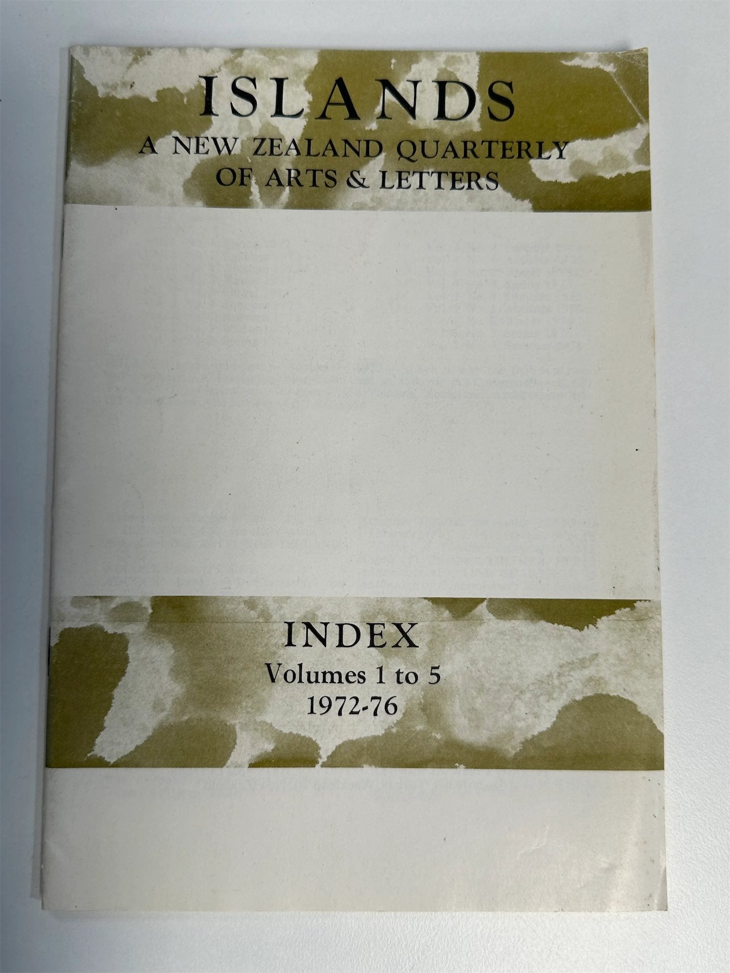 Islands A New Zealand Quarterly of Arts & Letters: Index Vol. 1 to 5 1972-76 by Unknown
