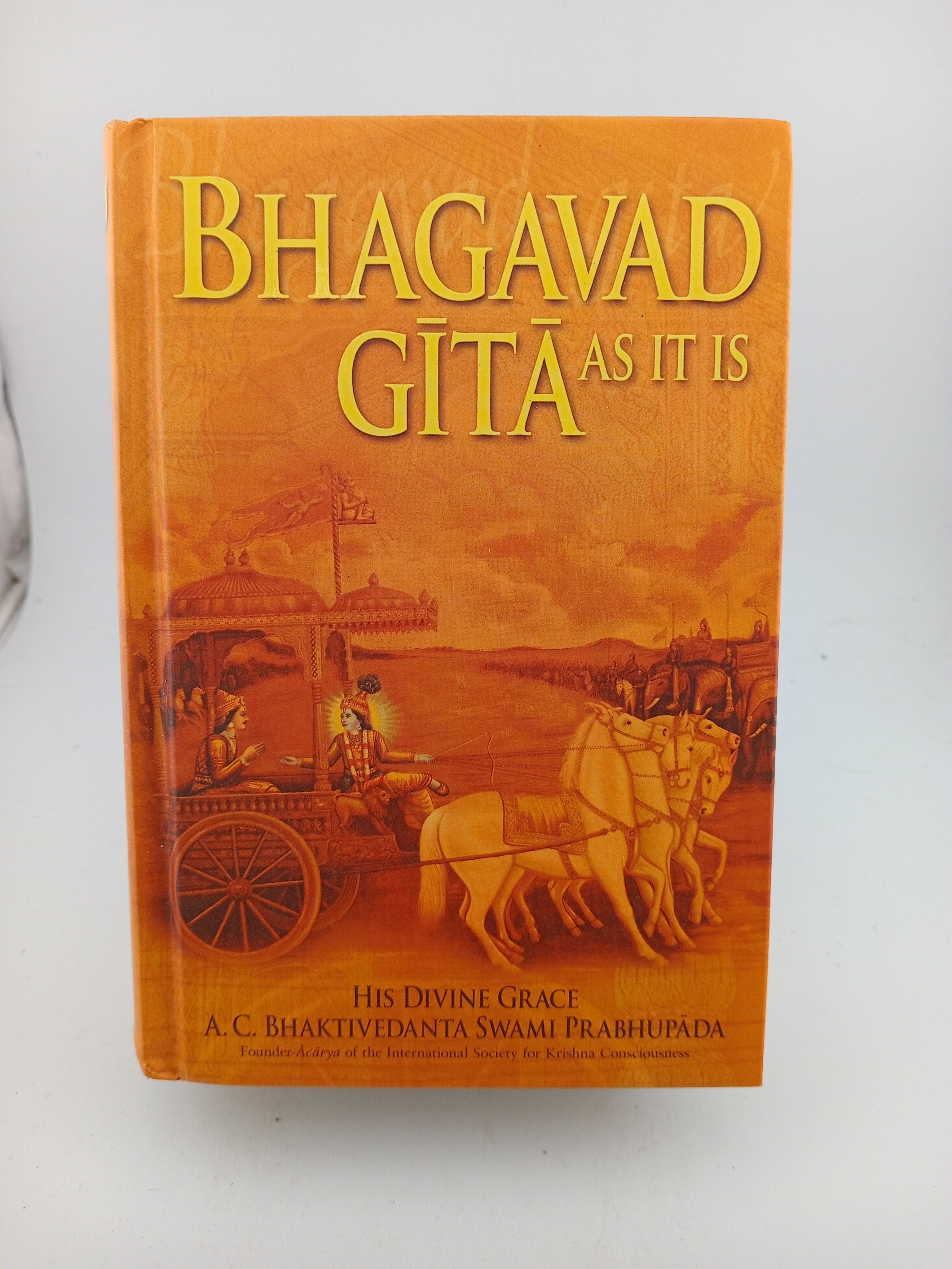 The Bhagavad-gita is the main source-book on yoga and a concise summary of India's Vedic wisdom. Yet remarkably, the setting for this best-known classic of spiritual literature is an ancient Indian battlefield. At the last moment before entering battle, the great warrior Arjuna begins to wonder about the real meaning of his life. Why should he fight against his friends and relatives? Why does he exist? Where is he going after death? In the Bhagavad-gita, Lord Krsna, Arjuna's friend and spiritual master, brings His disciple from perplexity to spiritual enlightenment. In the course of doing so, Krsna concisely but definitively explains transcendental knowledge; karma-yoga, jana-yoga, dhyana-yoga, and bhakti-yoga; knowledge of the Absolute; devotional service; the three modes of material nature; the divine and demoniac natures; and much more. Bhagavad-gita As It Is is the largest-selling, most widely used edition of the Gita in the world.