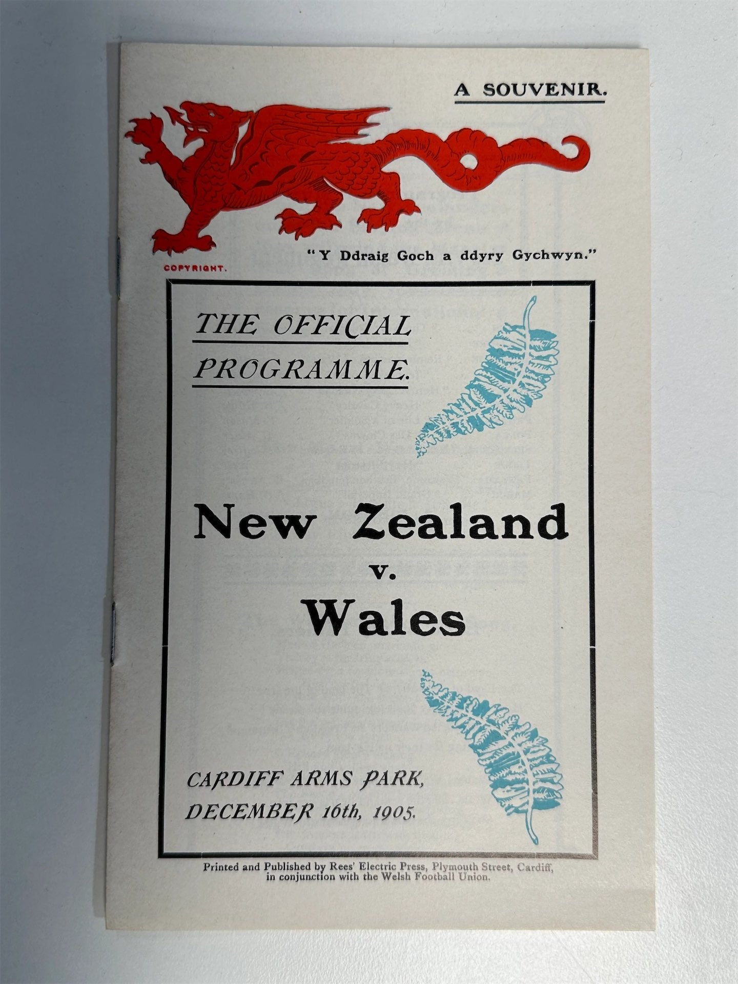 The Official Programme. New Zealand V. Wales Cardiff Arms Park December 16th 1905 by Unknown