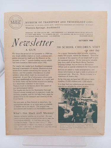 MoTaT: Museum of Transport and Technology of New Zealand Newsletter Oct 1968 by Motat