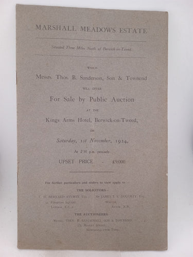 Marshall Meadows estate for sle by public auction at Berwick on Tweed on Saturday 1st Novemebr 1924 by Son & Townend Auctioneers Thos. B Sanderson