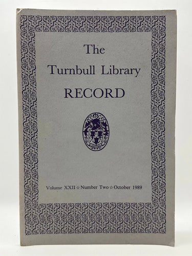 The Turnbull Library Record Vol. 22 No. 2 October 1989 by J.E. Traue [editor]